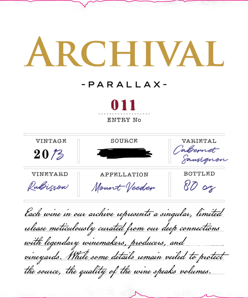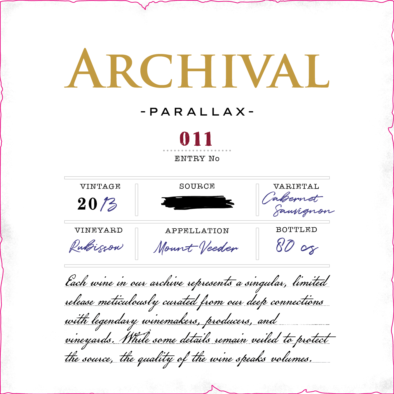 2013 “Parallax” Mt. Veeder Cabernet Sauvignon Rubissow Vineyard