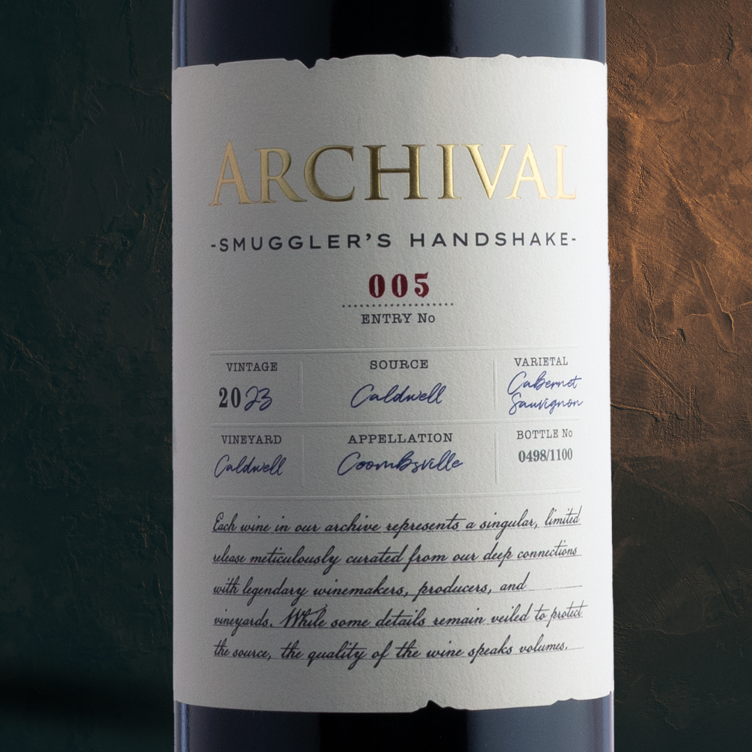 JFC, aka John “Fucking” Caldwell has a larger than life reputation in Napa. And his wines reflect that, known for being huge and hulking, with enormous depth and power. Hauntingly deep, dark, and brooding – they’re huge hits with collectors and connoisseurs for good reason. They also come with a price.  $100-$150 is the standard going rate for just about any bottle with the famed vineyard name on it. While most of our wines have been, and will be preserved under a layer of secrecy in some ways, this comes with no redaction. The kimono is wide open, and we’ve been busting at the seams to get this one out there. Notes from Bobby: This was an awesome experience. I’ve been friends with the winemaker Marc Gagnon for a few years. And recently befriended Joy Caldwell about a year ago. John always remained elusive. He’s often on a quad wearing his cowboy hat just cruising around and checking in on his vineyard crews.  When I approached Joy about this project she was interested but apprehensive. They do sell their bulk wine regularly, however no one ever is allowed to put “Caldwell Vineyard” on the label. We discussed the idea for about half an hour back in March and we agreed to the terms necessary to allow their proud name to be put on another label. The deal: All estate fruit, multiple rounds of blending and final approval by John and Marc. No blending after it leaves their facility.  And pay extra… This was an opportunity for me to learn about Caldwell estate. I explained I wanted a wine that was a little softer than their usual offerings. Something approachable in its youth, but with depth, structure and the stuffing to last in the cellar. So, with that known, we set out into the cave under their mountain and tasted lot after lot. I don’t typically take many notes in a tasting like this. You need to experience the wines, not hold a clipboard. It was eye opening to see the palette Marc gets to work with. The rolling hills yield multiple varieties and clones. The age of the vines vary. Nuances in the terrain and soil types. Beautiful and intimidating at the same time. So much of what they make there is a bit more extracted than what I was hoping to find. Their estate wines are only sold DTC and they expect their customers to age their wines for many years in the cellar before popping a cork. But this is not necessarily our intention with Archival. I wanted these wines to be enjoyable out of the gate. After about twelve different lots/blocks, I honed in on what would be closer to the style I wanted. Two barrels from there, a puncheon from over there, that one tank tasted great, and that cab franc peaked my interest as well. So, we left with a plan to reconvene in another month. They would pull samples of what I thought would work, six different lots in total, and I would sit down in the Caldwell lab and blend. The day came at the end of May to finalize the blend. They had twelve sample bottles in front of me. This is when you start taking notes, build the spreadsheet and lay it all out. Marc gave me space, they stayed working near me and I was able to ask questions, explain what I was experiencing with certain lots and how they mended well or clashed. It was great to tell Marc, “Hey what’s up with Block 9, supple and great mid palate. I need more length. Kruezer is working well but it’s not getting me all the way to where I want to go.” And he tastes where I am and recognizes my dilemma. He says “Try the Vandal or Block 15”. So I embark on that. Block 15 was a no go, although pretty good on its own, it made the wine too sharp and bitter. The Vandal was interesting. It’s a Cab Franc block. I always look to CF to provide lift, length and spice. So, I said, “well fuck it, let’s go with 12% Vandal.” Well, that didn’t work out. I started parsing it down…9%, 6%…still too much…then started playing in the 3-5% range. It’s shocking sometimes to see how a  1-2% can change a wine from good to great. In the end I had that moment, that one when you rest…because “this is it!” This is what I want to bottle. I blended it up for Marc to sample and went to his desk and said “This is what I like.” He rose from his chair and took a walk swirling and sipping. Contemplating. He came back eventually and said “Damn, that’s good! What are you going to sell this for?” We paid extra for this one, but did our best to keep the price as low as possible.  “Famously dubbed Napa’s “vine smuggler” for sneaking prized French clones into California in the 1980s, Caldwell not only helped shape the region’s vineyards but also championed Coombsville long before it became an official AVA. Drawn from select barrels and puncheons of Block 9, Kreuzer, and Vandal fruit, the wine is unabashedly bold—power-packed and robust, with penetrating layers of black and blue fruit wrapped in rich oak spice, turned earth, and graphite minerality. Fine-boned acidity and cocoa-powder tannins provide structure, while a savoury thread of smoked sea salt lifts and brightens the dark, textured core.”95 Points – Decanter