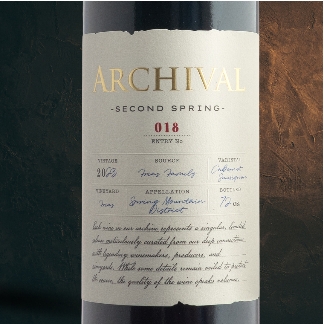 This release, “Second Spring”, is EXACTLY the kind of wine we want to bring you – a direct collaboration with a small producer we love and admire very much. If you don’t know Frias Family, you’re about to. I first tried Frias a few years ago, and met Manny Frias via Jason Moore. When we started Archival, I chatted with him about the business and threw out the idea of working together last year. And now, here we are. Manny Frias Sr. bought 100 acres in 1977 and by 1985 they had planted the first five. Today they tend 13 acres, and also have longstanding sources in Rutherford and Oakville. They’ve been quietly making some of the best wines on Spring Mountain for decades. Today, Manny Frias Jr. and his brother Fernando run the show. With winemaker Todd Heth steering the ship since 2004, their big, blockbuster Cabs always seem to rack up 95-97 points from Jeb and pals. The 2023 vintage being a textbook example. This was already locked and loaded for the big leagues when we got it. But there was a little room for improvement. Think M3 Competition vs the base M car. Now it’s fully tuned up, torqued, and track ready. While theirs spent 19 months in 50% new French Oak, we felt it needed a little more “oomph”. Another lane paved down the middle to open the palate up to a wider berth of fruit and toast to balance the minerality and tension in the mountain-bred structure. So, Bobby put more new Chiron oak on it, bringing it to 70% new oak and extending it to 24 months. Just right, we think. Now the dusty black currant and creme de cassis, black raspberries and shaved pencil lead can run free. With wisps of violet, sandlewood and dried herbs guided along a soft bed of toasty oak and fine tannins. And while it’s just a young pup, it shows quite well with some air. It’ll really howl in another year or two, though. And has the ability to go many, many more beyond that. “Second Spring” signals the coming of an epic collaboration. And you can punch your ticket to entry for less than half what their own $95 Spring Mountain District Cab costs. Like all of our releases, this will go fast – and I encourage you to stockpile your fair share while it’s here.